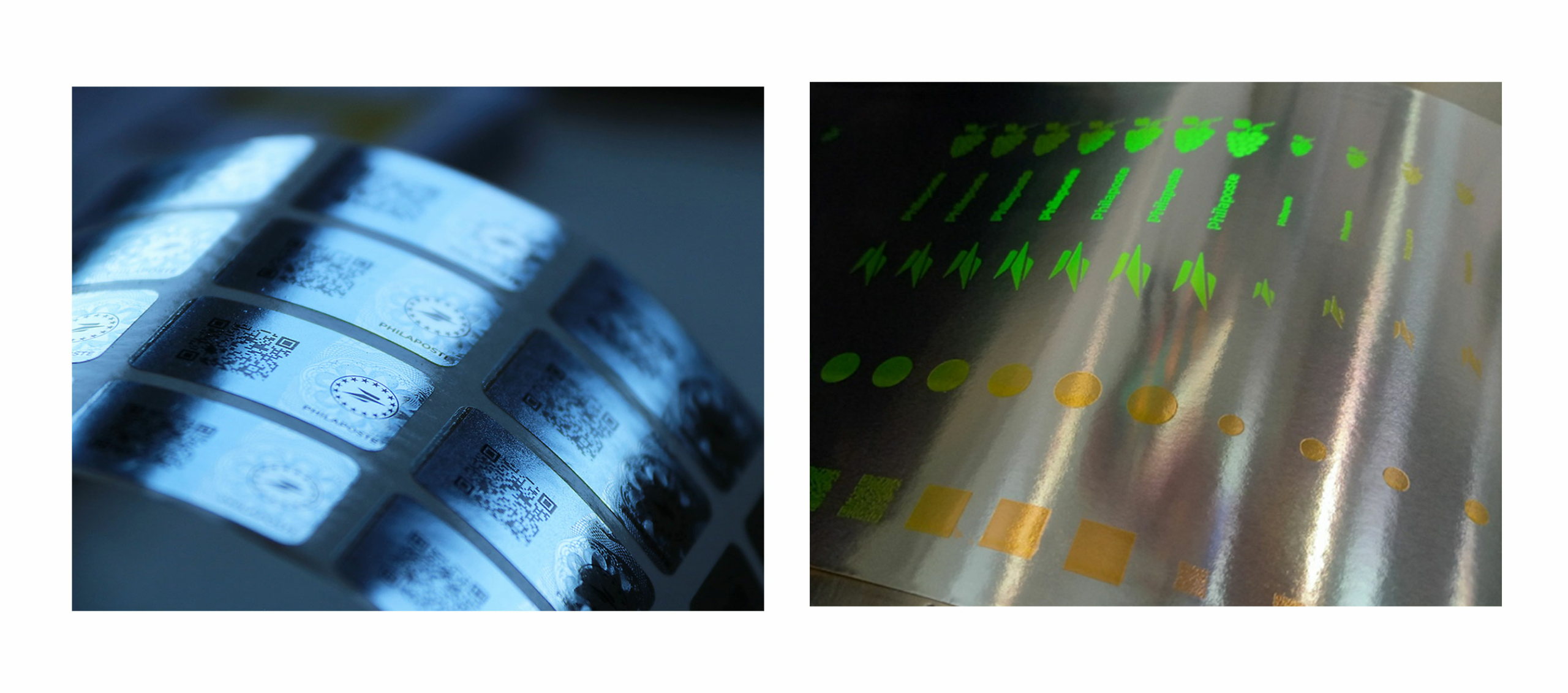L’ étiquette sécurisée, avec des solutions avancées telles que l’intégration d’encres infalsifiable comme l’OVM de C.S.T, authentifiable par Smartphone, encre ADN unique, qui peuvent être accompagné de solutions d’identification, d’authentification et de traçabilité industrielle et commerciale, incluant les QR codes GSI (augmentées, sérialisées, nutritionnels, d’encaissement) et le Datacrypt un passeport digital par Philaposte