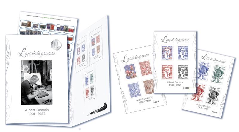 Le 28 avril 2026, La Poste lance une nouvelle série philatélique : L’art de la gravure. Sous forme d’un livret en 3 volets, cette nouvelle collection annuelle rendra hommage aux « grands » graveurs français, et sera éditée en tirage limité. La première édition est consacrée à Albert DECARIS, l’un des plus grands graveurs français du XXe siècle.