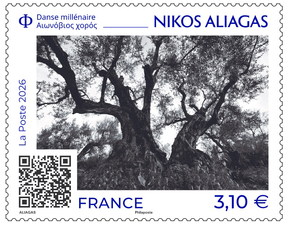 Le 15 juin 2026, La Poste émet un timbre de la série artistique illustré par « Danse millénaire », une oeuvre de Nikos ALIAGAS où deux oliviers semblent s’unir pour devenir « un » dans un mouvement suspendu.